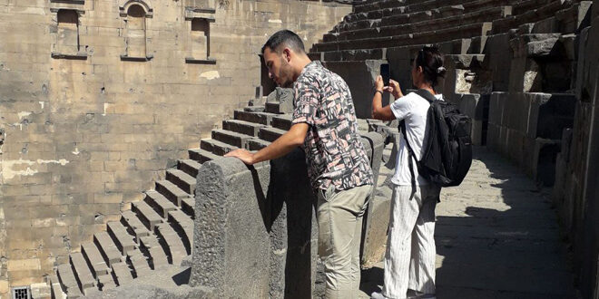 زارت مجموعة سياحية أوروبية مؤلفة من عشرة سائحين مدينة بصرى الشام بريف درعا، واطلعت على معالمها الأثرية وأبدت إعجابها بالمدينة القديمة.