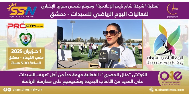 أقام “بروجيم معلا” فعالية اليوم الرياضي للسيدات، بإشراف الكوتش “منال المصري” و “زويا جمعة”، وذلك على أرض ملعب الفيحاء بدمشق.