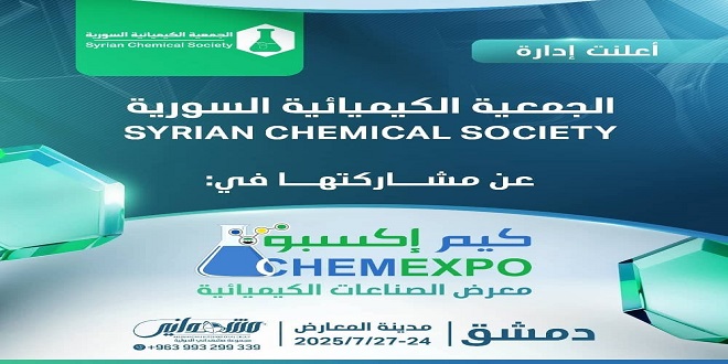 “الجمعية الكيميائية السورية” تشارك في المعرض السوري الدولي للصناعات الكيميائية “كيم إكسبو”