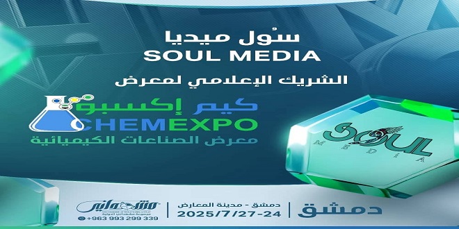 منصة  “سُول ميديا ”  الشريك الإعلامي لـِ معرض السوري الدولي للصناعات الكيميائية “كيم إكسبو”