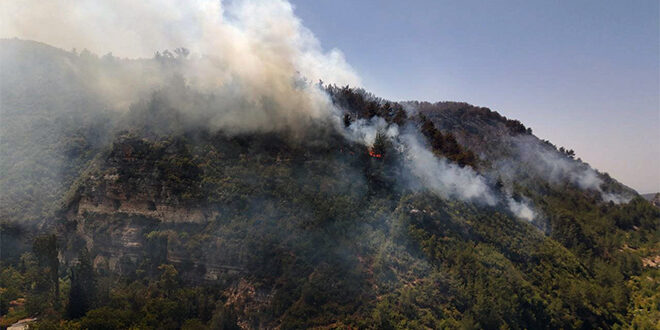 استمرار جهود مكافحة الحرائق في ريفي اللاذقية وحماة وإخماد خمسة منها