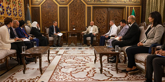 بحث وزير الطوارئ وإدارة الكوارث “رائد الصالح” مع وفد من هيئة الأمم المتحدة للمرأة، برئاسة “معز دريد” المدير الإقليمي للهيئة في الدول العربية، دور المرأة السورية في ظل الظروف الراهنة، مع التأكيد على مكانتها كشريك أساسي في الاستجابة الوطنية وبناء المجتمع.