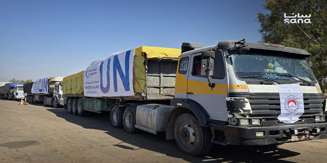 وكانت قافلة المساعدات الـ 14 دخلت إلى السويداء عبر ممر بصر الحرير في الـ 21 من الشهر الجاري، متضمنة 29 شاحنة محملة بمواد غذائية وإغاثية وسلات إيواء وألبسة.