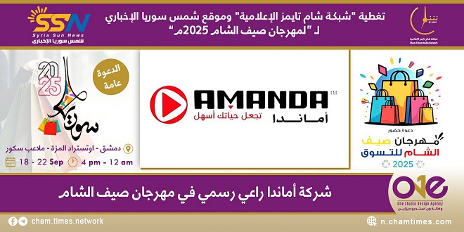 تشارك شركة “أماندا” في مهرجان صيف الشام للتسوق 2025 والذي ينطلق في 18 ويستمر لمدة خمسة أيام حتى 22 أيلول من الشهر الحالي، وذلك على أرض ملاعب سكور الواقعة على أوتستراد المزة.