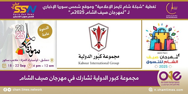 تشارك مجموعة “كبور” الدولية في مهرجان صيف الشام للتسوق 2025 والذي ينطلق في 18 ويستمر لمدة خمسة أيام حتى 22 أيلول من الشهر الحالي، وذلك على أرض ملاعب سكور الواقعة على أوتستراد المزة.