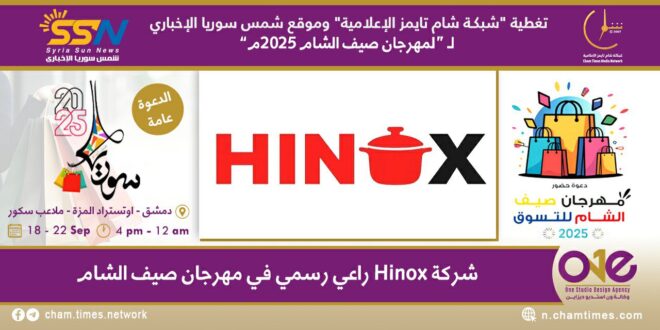 تشارك شركة “Hihox ” كـ راعي رسمي في مهرجان صيف الشام للتسوق 2025 والذي ينطلق في 18 ويستمر لمدة خمسة أيام حتى 22 أيلول من الشهر الحالي، وذلك على أرض ملاعب سكور الواقعة على أوتستراد المزة.
