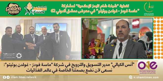 وضعت شركة “ماسة فودز – غولدن بوتيتو” بصمتها الخاصة من خلال مشاركتها المميزة في معرض دمشق الدولي بنسخته الـ 62، ومنذ اللحظات الأولى من افتتاح المعرض شهد جناح ماسا فودز إقبالاً واسعاً من الزوار والمهتمين بقطاع الصناعات الغذائية.