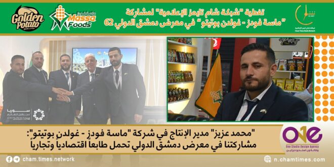 أكد “محمد عزيز” مدير الإنتاج في شركة “ماسة فودز – غولدن بوتيتو” أن جاءت مشاركتهم في معرض دمشق الدولي بنسخته الـ62 تحمل طابعاً تجارياً اقتصادياً لتقديم منتج يبني ثقة قوية بين المصنع والمستهلك، من أقدم عاصمة مأهولة في التاريخ، ومدينة التجارة والصناعة الأقدم في العالم.
