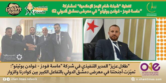 أكد “طلال عزيز” المدير التنفيذي في شركة “ماسة فودز – غولدن بوتيتو” أن انتشارهم في معرض دمشق الدولي بنسخته الـ62 كان أجمل ماقدموه خلال أيامه، حيث كانت كوادر شركتهم تعمل كخلية نحل تنتشر في كامل بقاع المعرض، مشيراً إلى أن كوادرهم استقبلت الزوّار عند مختلف أبواب المعرض لتقديم الخرائط لهم التي تسهّل عليهم عملية التنقل داخل المعرض، كما تحتوي على أماكن تموضع أجنحة الشركة وكيفية الوصول إليها.