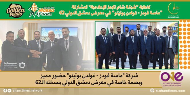 وضعت شركة “ماسة فودز – غولدن بوتيتو” بصمتها الخاصة من خلال مشاركتها المميزة في معرض دمشق الدولي بنسخته الـ 62، ومنذ اللحظات الأولى من افتتاح المعرض شهد جناح ماسا فودز إقبالاً واسعاً من الزوار والمهتمين بقطاع الصناعات الغذائية.
