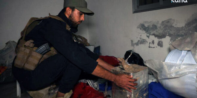 ضبط جهاز الاستخبارات العامة بالتعاون مع قيادة الأمن الداخلي في محافظة حمص، عبوة ناسفة كانت مخبأة داخل شقة في بلدة الكفرون بمنطقة مشتى الحلو، وقام بتفكيكها.