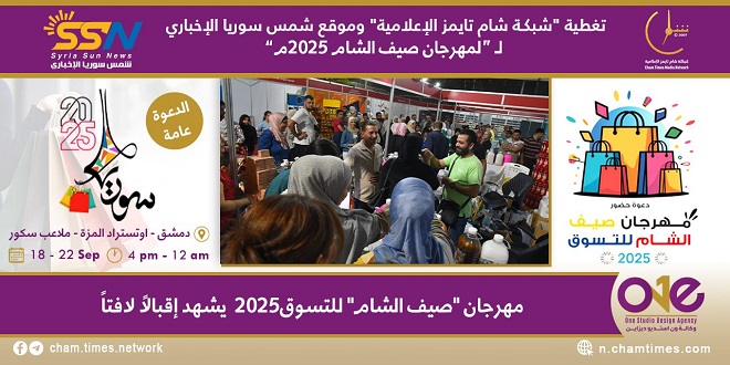 وشهد مهرجان “صيف الشام” للتسوق 2025 إقبالاً لافتاً، برعاية من غرفة صناعة دمشق وريفها.