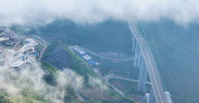 افتتحت،اليوم الأحد، حركة المرور على جسر هواجيانغ جراند كانيون في مقاطعة قويتشو بجنوب غربي الصين، الذي يعتبر أعلى جسر في العالم، ما يقلل زمن السفر عبر الوادي العميق من ساعتين إلى دقيقتين فقط، بعد اكتمال أعمال بنائه التي استمرت لأكثر من ثلاثة أعوام.