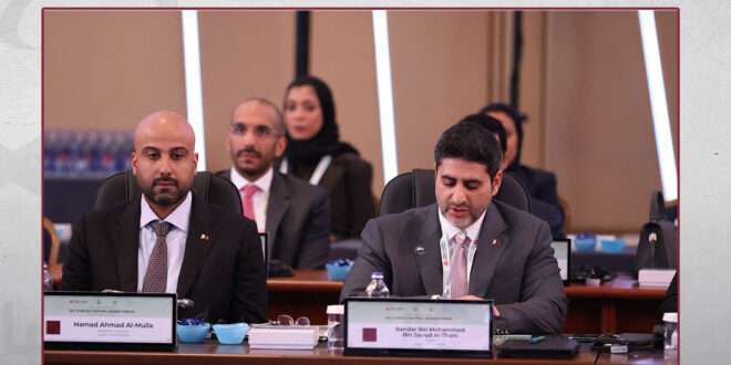 مثل دولة قطر في الاجتماع سعادة الشيخ “بندر بن محمد بن سعود آل ثاني” محافظ مصرف قطر المركزي.