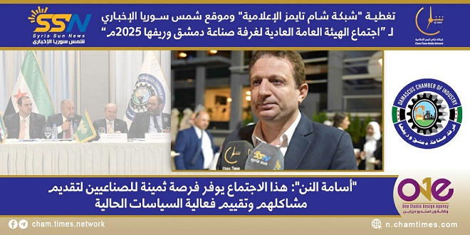 أكد “أسامة النن”عضو مجلس إدارة غرفة صناعة دمشق وريفها – رئيس القطاع الغذائي – ومدير عام شركة “الدرة” العالمية في سوريا” أن العاصمة دمشق شهدت انعقاد اجتماع مهم للهيئة العامة للصناعيين، حيث تم التركيز على مناقشة التحديات والمعوقات التي تواجه القطاع الصناعي في البلاد، مشيراً إلى أن يأتي هذا الاجتماع في إطار حرص الحكومة على تعزيز التواصل مع الغرف الصناعية والاستماع إلى مشكلات الصناعيين بشكل مباشر.