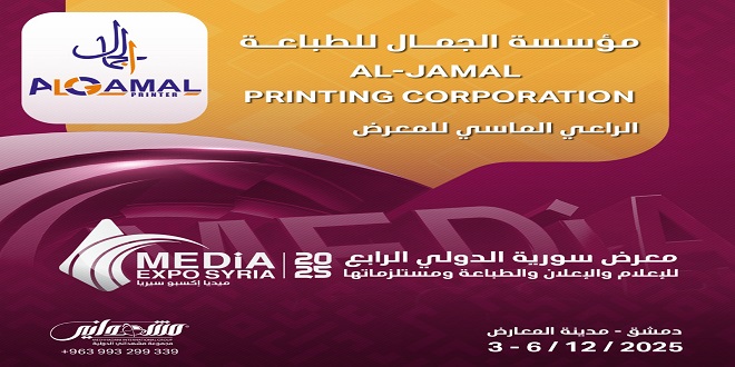 مؤسسة الجمال الراعي الماسي لـ معرض سوريا الدولي الرابع للإعلام والإعلان والطباعة ومستلزماتها “ميديا إكسبو سيريا” والذي تستعد مجموعة مشهداني الدولية للمعارض والمؤتمرات لتنظيمه، من خلال استقطاب المؤسسات الإعلامية والإعلانية، حيث سيقام على أرض مدينة المعارض بدمشق، من تاريخ 3 وحتى 2025/12/6.
