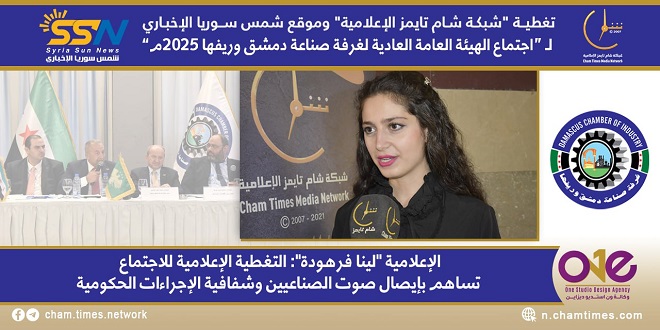 أكدت الإعلامية “لينا فرهودة” المراسلة الخاصة لـ”شام تايمز”، أن التغطية الإعلامية للاجتماع السنوي لغرفة صناعة دمشق وريفها مع الوزارات والجهات الرسمية ليست مجرد نقل لخبر عادي، بل واجب وطني ورسالة إعلامية تنموية هامة، مضيفةً: “هذا الاجتماع يمثل نموذجاً فريداً للحوار الوطني البناء، حيث اجتمع صناعيو سورية مع مسؤولي الحكومة في حوار مفتوح وشفاف.. وشكلت التغطية الإعلامية ضرورة لتوثيق هذا الاجتماع الاستثنائي وإيصال صوت الصناعيين الحقيقي إلى أوسع نطاق ممكن”.