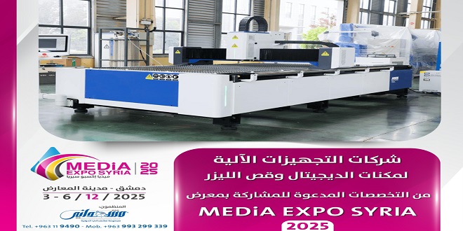 ودعت الجهة المنظمة “شركات التجهيزات الآلية وقص الليزر” للمشاركة في فعاليات المعرض، الذي يشكل فرصة لتبادل الخبرات وإقامة الشراكات وتعزيز حضور القطاع الإعلامي السوري على المستويين المحلي والإقليمي.
