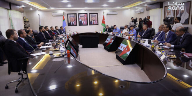 عُقدت في العاصمة الأردنية عمان،أمس الثلاثاء، جلسة مباحثات رسمية بين وزارتي الداخلية السورية والأردنية، ترأسها كل من وزير الداخلية “أنس خطاب”، ووزير الداخلية الأردني “مازن الفراية”، وجرى خلالها بحث سبل تعزيز التعاون الثنائي في المجالات الأمنية، وتنظيم عمل المنافذ الحدودية، وتبادل الخبرات في مجالات مكافحة الجريمة، وضبط الحدود، وتسهيل حركة عبور الأفراد والبضائع بما يحقق المصلحة المشتركة ويخدم أمن واستقرار البلدين.
