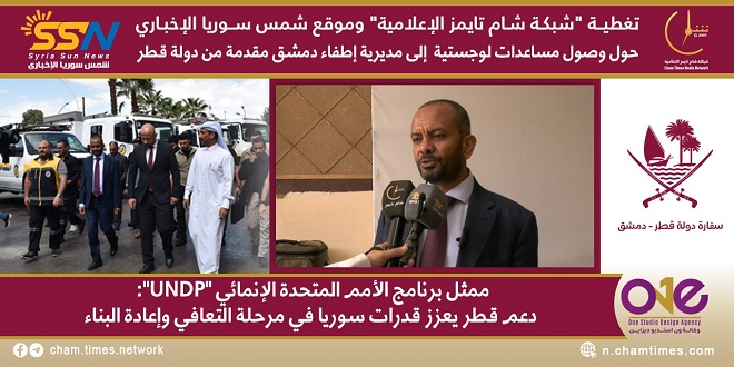 ممثل برنامج الأمم المتحدة الإنمائي “UNDP”: دعم قطر يعزز قدرات سوريا في مرحلة التعافي وإعادة البناء