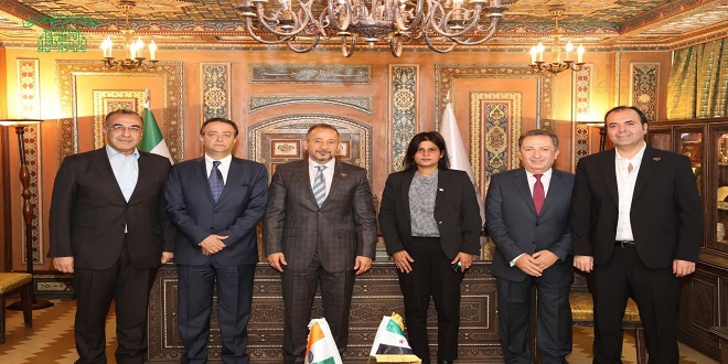 استقبل المهندس “عصام الغريواتي” رئيس غرفة تجارة دمشق، “رينو ياداف” القائم بأعمال السفارة الهندية في دمشق، بحضور المهندس “عمار البردان” أمين سر الغرفة، و”درويش العجلاني وفريد خوري عضوي” مكتب الغرفة، و”فواز العقاد وعدنان الحافي” عضوي مجلس الإدارة، إلى جانب الدكتور “عامر خربوطلي” المدير العام للغرفة.