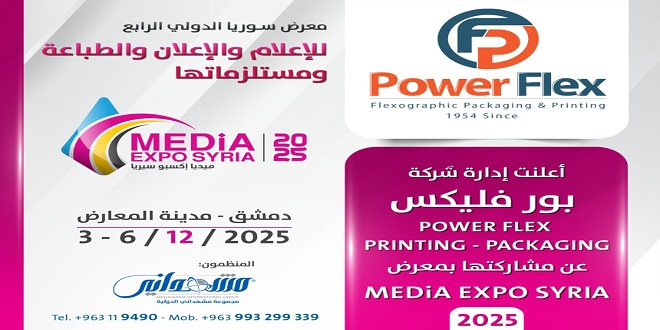 أعلنت شركة “بور فليكس” مشاركتها في معرض سوريا الدولي الرابع للإعلام والإعلان والطباعة ومستلزماتها “ميديا إكسبو سيريا” ، والذي تستعد مجموعة مشهداني الدولية للمعارض والمؤتمرات لتنظيمه، من خلال استقطاب المؤسسات الإعلامية والإعلانية، حيث سيقام على أرض مدينة المعارض بدمشق، من تاريخ 3 وحتى 2025/12/6.