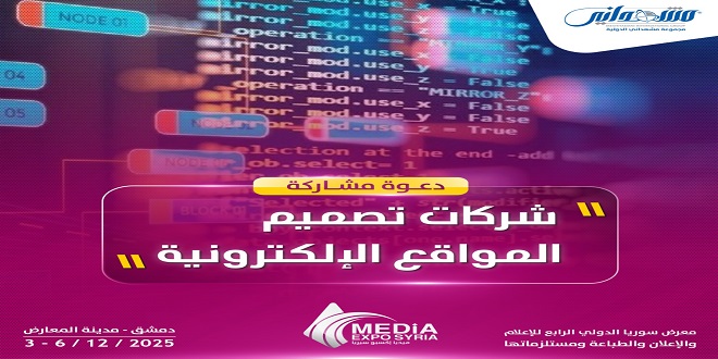تستعد مجموعة مشهداني الدولية للمعارض والمؤتمرات لتنظيمه، من خلال استقطاب المؤسسات الإعلامية والإعلانية، حيث سيقام على أرض مدينة المعارض بدمشق، من تاريخ 3 وحتى 2025/12/6.