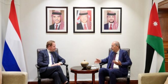 وأوضح “الصفدي” أن مباحثاتهما تركزت على جهود البلدين المشتركة من أجل تعزيز الأمن والاستقرار في المنطقة، وخصوصاً جهودهما خلال الأشهر الماضية لإيصال المساعدات الإنسانية إلى غزة، منوهاً بموقف هولندا الداعم لحل لدولتين ولحق الشعب الفلسطيني في إقامة دولته المستقلة على ترابه الوطني وفق القانون الدولي.