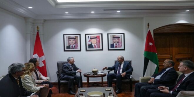 واجتمع “الصفدي” ،أمس الأربعاء، مع وزير خارجية سويسرا “إيغناسيو كاسياس”، وبحث معه التطورات في المنطقة ومستجدات الأوضاع في سوريا، و أكد دعم الأردن لجهود الحكومة السورية في عملية إعادة البناء على الأسس التي تضمن وحدة سوريا واستقرارها وسيادتها وسلامة أراضيها ومواطنيها.