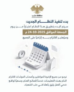 وأكد محافظ حلب عبر صفحته على منصة “إكس” أن الهدف من النظام الجديد هو تحقيق التوازن بين كلفة التشغيل وحق المواطن في الحصول على خدمة مستقرة وعادلة، داعياً إلى تعاون جميع الأطراف لضمان نجاح تطبيق القرار.