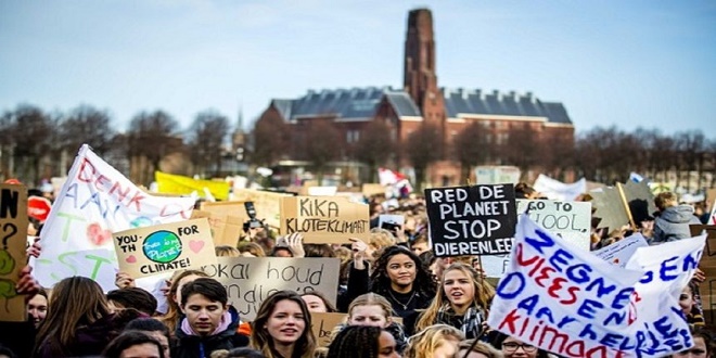تظاهر عشرات الآلاف من الأشخاص في مدينة لاهاي الهولندية، دعماً لقضية مكافحة التغير المناخي، قبل أيام من الانتخابات العامة التي تهيمن عليها قضيتا الهجرة والإسكان.