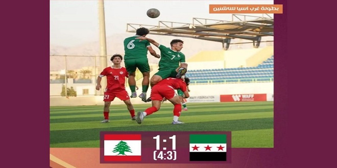 خسر منتخب سوريا للناشئين بكرة القدم أمام نظيره اللبناني بركلات الترجيح 4-3، بعد انتهاء الوقت الأصلي بالتعادل بهدف لهدف، ضمن منافسات الدور نصف النهائي لبطولة اتحاد غرب آسيا المقامة في الأردن.