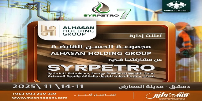 أعلنت مجموعة “الحسن القابضة” عن مشاركتها في معرض سوريا الدولي للبترول والطاقة والثروة المعدنية، تحت رعاية وزارة الطاقة السورية وبمشاركات محلية ودولية واسعة، حيث تستعد مجموعة مشهداني الدولية لتنظيم دورة استثنائية من المعرض، تحت اسم “سيربترو_7″، وذلك على أرض مدينة المعارض بدمشق خلال الفترة من 2025/11/11 ولغاية 2025/11/14.