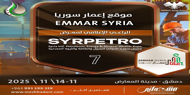 “موقع إعمار سوريا” الراعي الإعلامي لـ معرض سوريا الدولي للبترول والطاقة والثروة المعدنية