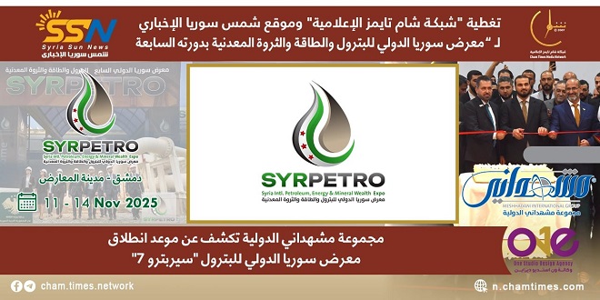 “تحت شعار “بترول المستقبل… استثمارٌ وتنمية”، تعلن مجموعة مشهداني الدولية للمعارض والمؤتمرات عن انطلاق فعاليات الدورة السابعة من معرض سوريا الدولي للبترول والطاقة والثروة المعدنية – سيربترو 7 الذي يُقام برعاية كريمة من وزارة الطاقة السورية، وبالتعاون مع الشركة السورية للبترول ، وبدعم من شركة UCC HOLDING وذلك على أرض مدينة المعارض في دمشق، خلال الفترة من 2025/11/11 ولغاية 2025/11/14.