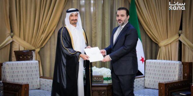 وزير الخارجية يتسلم أوراق اعتماد السفير القطري في سوريا 2025-11-20 مقالات مشابهة رئيسا الإمارات وأذربيجان يبحثان سبل تعزيز التعاون الثنائي والقضايا الدولية 2025-12-18 قوات الاحتلال تعتقل 13 فلسطينياً في الضفة الغربية 2025-12-18 تركيا تدخل المروحية المسيرة “نانو ألب” إلى السوق العالمية 2025-12-18 شام تايمز-متابعة استقبل وزير الخارجية والمغتربين السوري “أسعد حسن الشيباني” في دمشق السفير القطري “خليفة عبد الله آل محمود”، وتسلّم منه نسخة من أوراق اعتماده سفيراً لدولة قطر لدى الجمهورية العربية السورية.