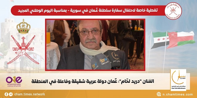 أكد الفنان “دريد لحّام” على العلاقات القوية والمتينة التي تجمع سوريا وعمان منذ سنوات، مشيراً إلى أن عُمان دولة عربية شقيقة وفاعلة في المنطقة، ووجود علاقات مستقرة وقوية معها يصبّ في مصلحة البلدين.