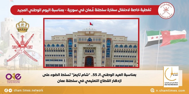 سلّطت شبكة “شام تايمز” الإعلامية الضوء على ازدهار القطاع التعليمي في عُمان بمناسبة العيد الوطني الـ 55 للسلطنة، والذي احتفلت به السفارة بدمشق، بحضور رسمي ودبلوماسي.