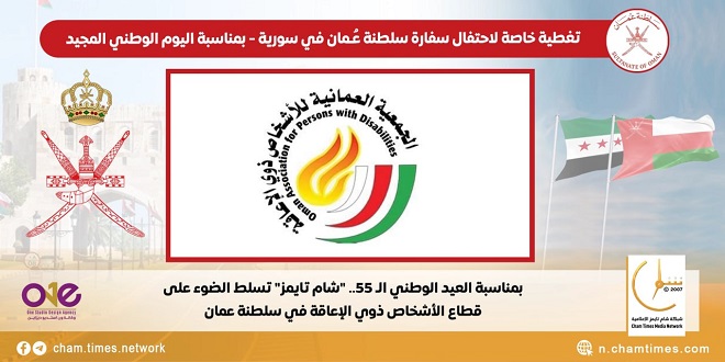 سلّطت شبكة “شام تايمز” الإعلامية الضوء على قطاع الأشخاص ذوي الإعاقة في عُمان، بمناسبة العيد الوطني الـ 55 للسلطنة، والذي احتفلت به السفارة بدمشق، بحضور رسمي ودبلوماسي.