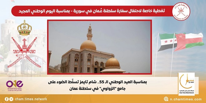 سلّطت شبكة “شام تايمز” الإعلامية الضوء على أهم المعالم السياحية في عُمان بمناسبة العيد الوطني الـ 55 للسلطنة، والذي احتفلت به سفارة السلطنة بدمشق، بحضور رسمي ودبلوماسي.