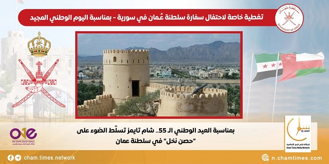 سلّطت شبكة “شام تايمز” الإعلامية الضوء على أهم المعالم التاريخية في عُمان بمناسبة العيد الوطني الـ 55 للسلطنة، والذي احتفلت به سفارة السلطنة بدمشق، بحضور رسمي ودبلوماسي.