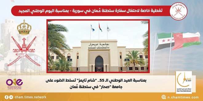 سلّطت شبكة “شام تايمز” الإعلامية الضوء على أهم الجامعات في عٌمان بمناسبة العيد الوطني الـ55 لسلطنة عمان، والذي احتفلت به سفارة السلطنة بدمشق، بحضور رسمي ودبلوماسي.