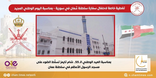 سلّطت شبكة “شام تايمز” الإعلامية الضوء على أهم المعالم الدينية في عُمان بمناسبة العيد الوطني الـ 55 للسلطنة، والذي احتفلت به سفارة السلطنة بدمشق، بحضور رسمي ودبلوماسي.