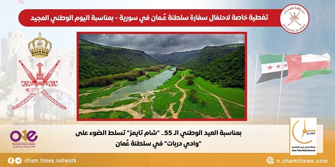 سلّطت شبكة “شام تايمز” الإعلامية الضوء على أهم المعالم التاريخية في عٌمان بمناسبة العيد الوطني الـ55 لسلطنة عمان، والذي احتفلت به سفارة السلطنة بدمشق، بحضور رسمي ودبلوماسي.