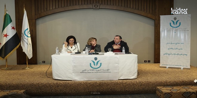 خصصت المؤسسة السورية للثقافة والتنوير أولى فعالياتها الحوارية حول العدالة الانتقالية في السياق السوري، بمشاركة عدد من الشخصيات الحقوقية والمهتمين بالشأن العام، وذلك في فندق البوابات السبع بدمشق مساء اليوم. وتأتي هذه الفعالية في إطار جهود إعادة تفعيل قيم الحوار والنقاش داخل المجتمع السوري في مرحلة ما بعد التحرير.