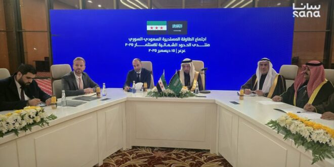 شارك وفد من الهيئة العامة للمنافذ والجمارك السورية برئاسة “قتيبة بدوي” رئيس الهيئة في منتدى الحدود الشمالية للاستثمار 2025، الذي أقيم في مدينة عرعر بالمملكة العربية السعودية، وذلك بدعوة من الأمير “فيصل بن خالد بن سلطان بن عبد العزيز آل سعود”، أمير منطقة الحدود الشمالية، ووزير الاستثمار السعودي “عبد العزيز الفالح”.