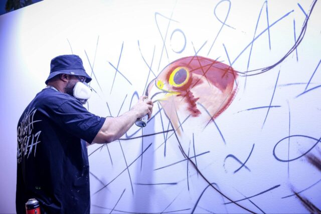 وأيضا يشارك معها الفنان التشكيلي السوري “غياث الروبة” الذي ابدع في رسم أكثر من جدارية إهداء لأكادمية الفجيرة للفنون وذلك على شاطئ المظلات في الإمارة.