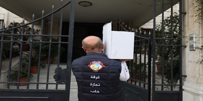 وأوضح أمين سر غرفة تجارة حلب زين العابدين قاظان أنه تم توزيع تقديم مساعدات إغاثية عاجلة شملت مواد غذائية وأغطية وفرش ووجبات غذائية على الأسر التي نزحت من أحيائها السكنية نتيجة الأعمال العسكرية التي شهدتها الأيام الأخيرة في عدة أحياء من المدينة.