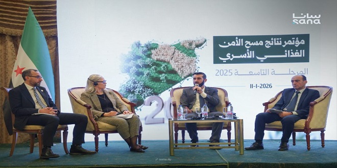 أعلنت هيئة التخطيط والإحصاء اليوم الأحد، نتائج مسح الأمن الغذائي الأسري في سوريا “المرحلة التاسعة – 2025″، الذي نفذته بالتعاون مع برنامج الأغذية العالمي “WFP”، وذلك خلال مؤتمر في فندق الشام بدمشق.