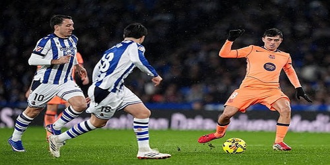 خسر برشلونة أمام مضيفه ريال سوسيداد بهدف مقابل هدفين، في المباراة التي جمعت الفريقين، على ملعب أنويتا، ضمن منافسات الجولة العشرين من بطولة الدوري الإسباني لكرة القدم.